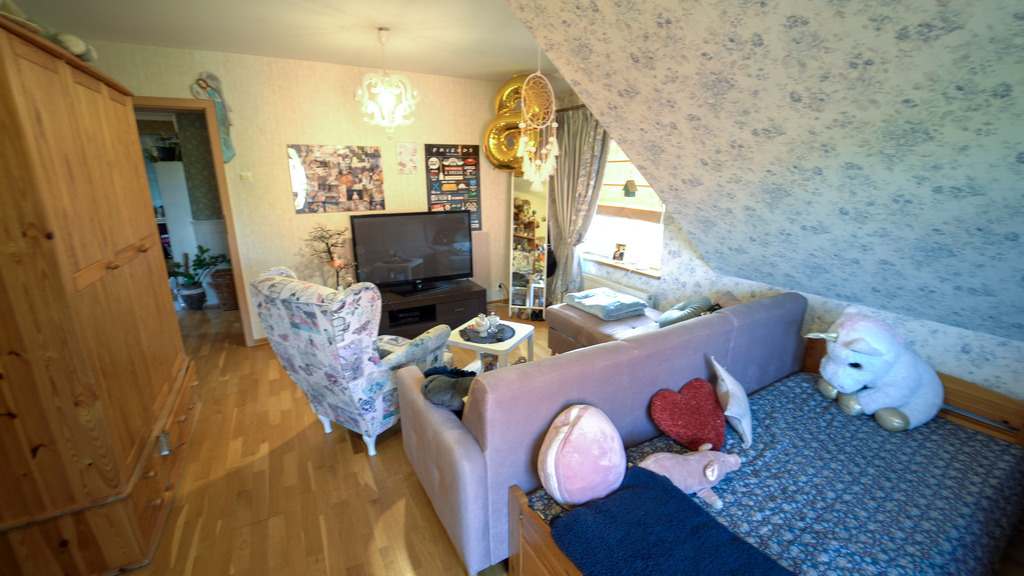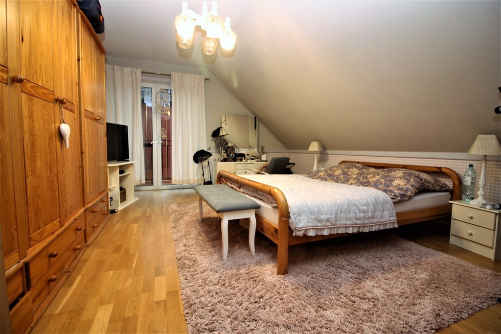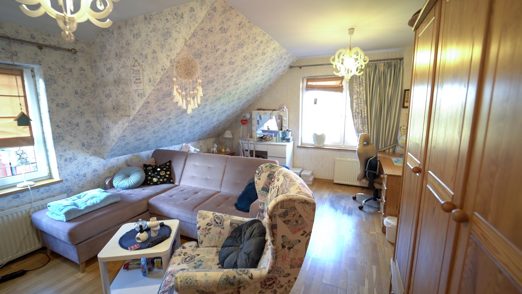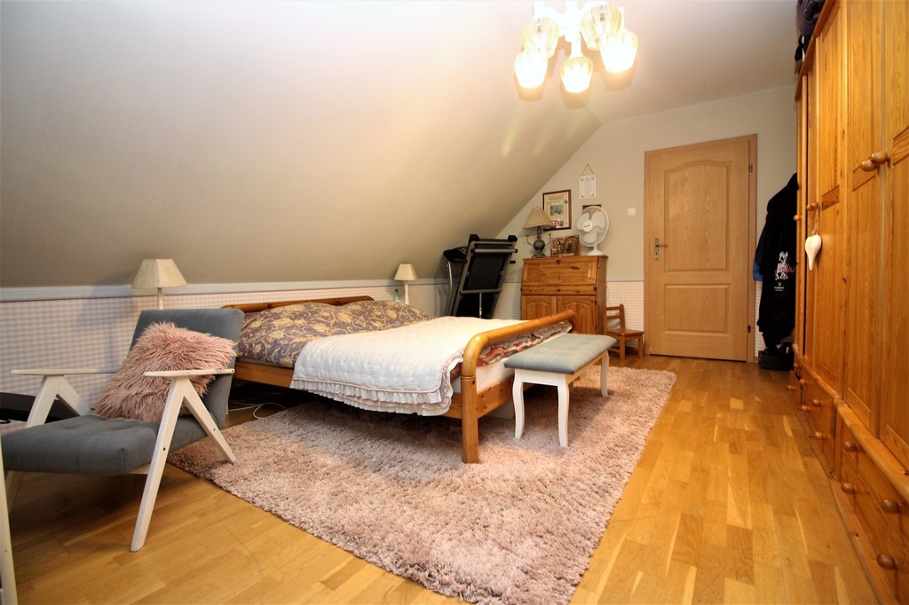 Dom posiada panele fotowoltaiczne, pompę ciepła, strych do zagospodarowania.