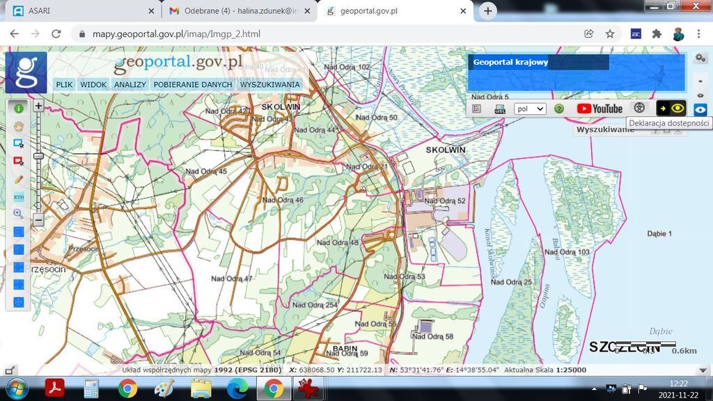 Nieruchomość gruntowa niezabudowana zlokalizowana w Szczecin-Skolwin, obr. Nad Odrą, o powierzchni 3074 m2. Użytek R IIIa pow. 3074 m2.