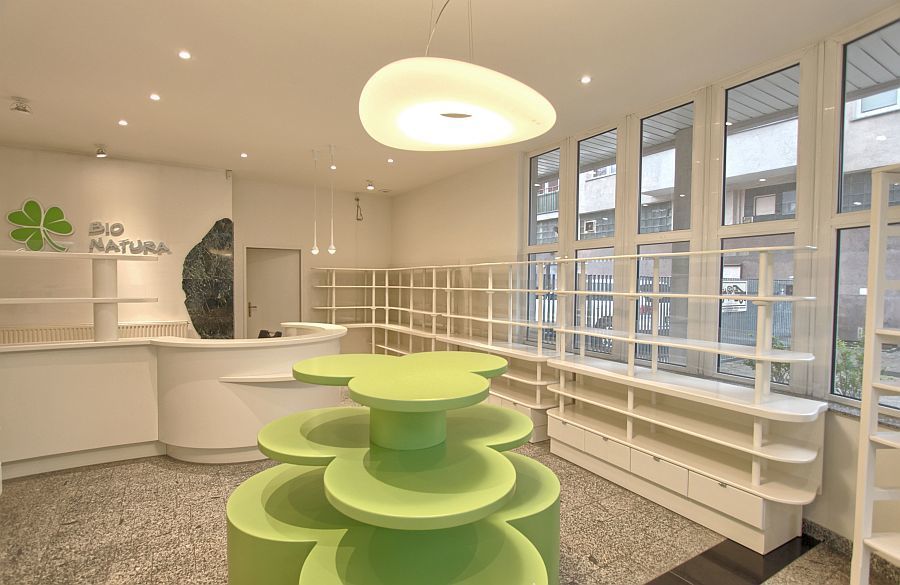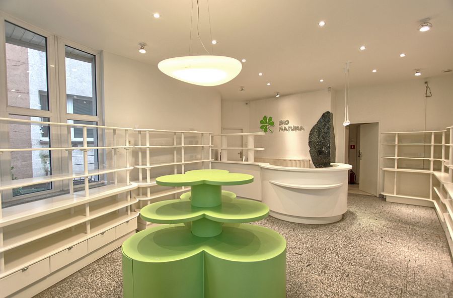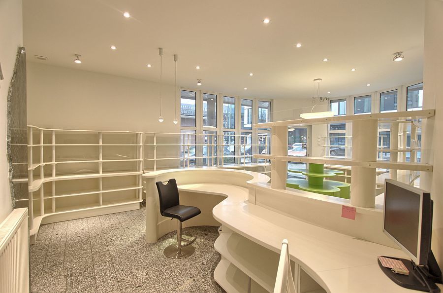 Duże, szklane witryny zapewniają dużo światła oraz dużą powierzchnię reklamową.