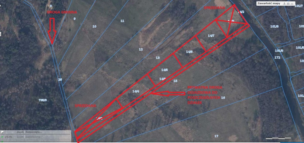 Działka idealna pod inwestycję. Z prywatnej drogi dojazdowe bezpośredni dostęp do rzeki Iny.