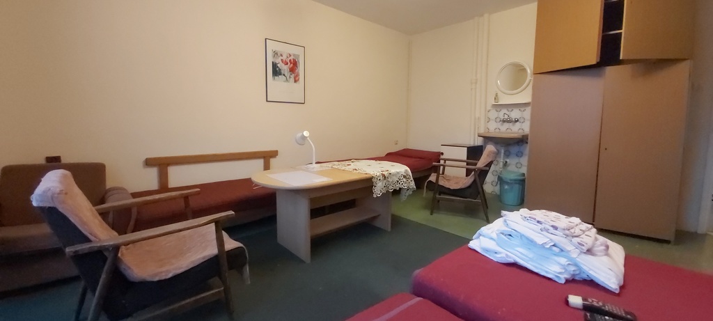 parter: kuchnia, łazienka z WC, pokój 2-osobowy, pokój 4-osobowy,