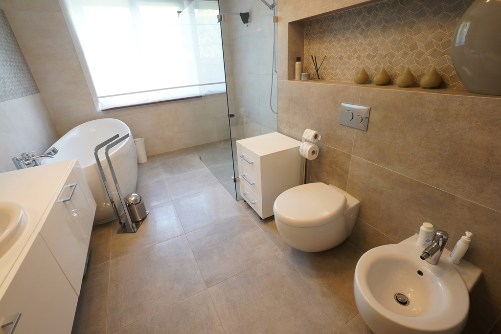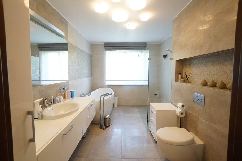 3 sypialnie o powierzchni 14 m2, 16 m2, 18,74 m2, duża łazienka 11,32 m2.