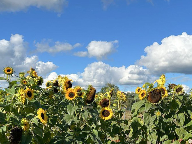 Dach pokryty blachodachówką, szambo.