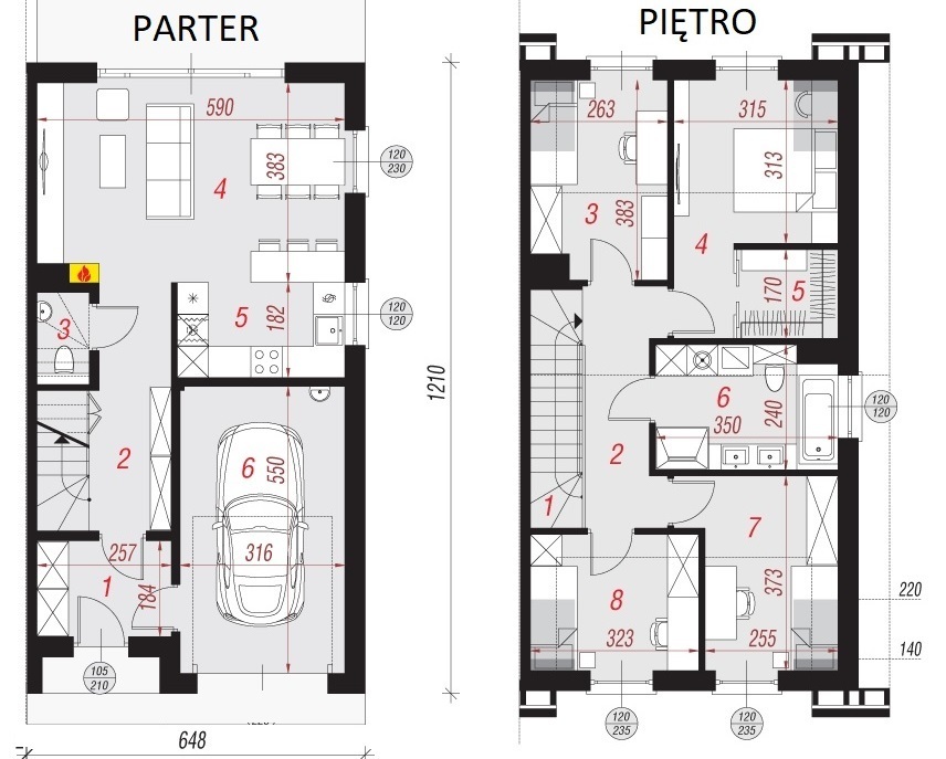 - garaż w bryle budynku (17.03 m2).