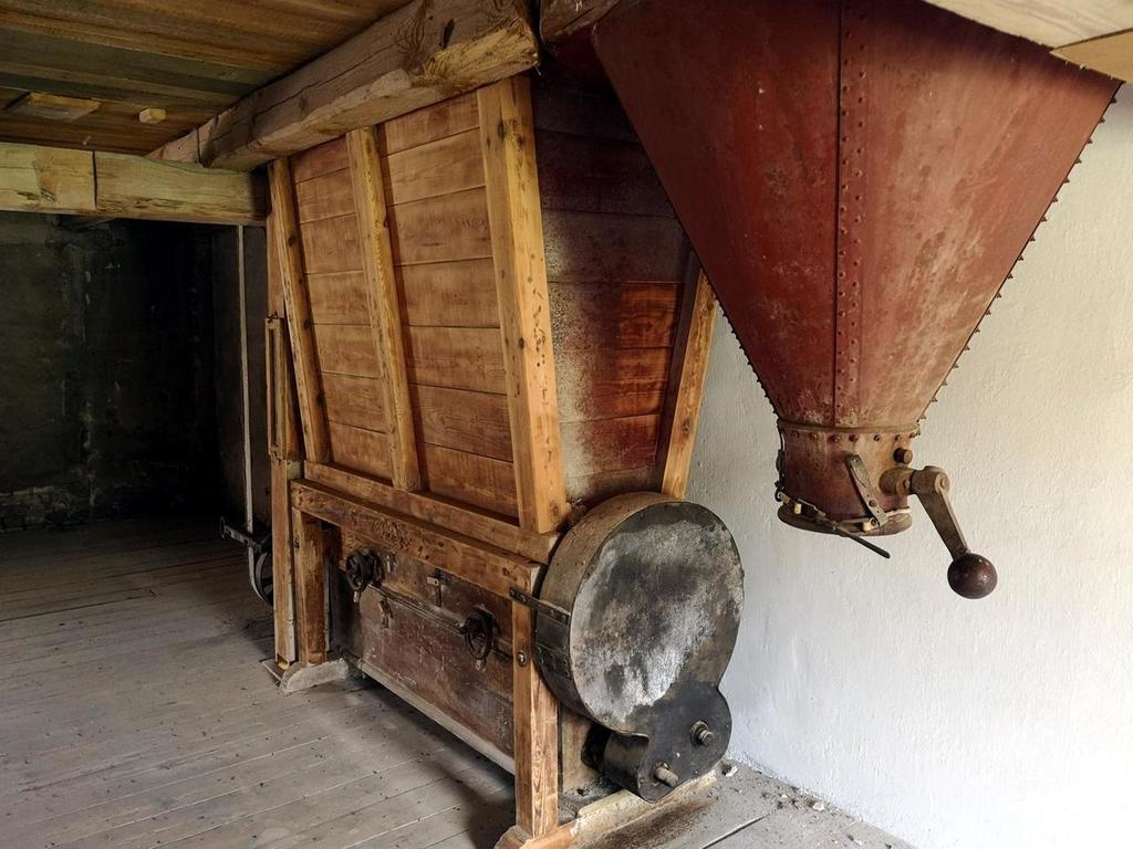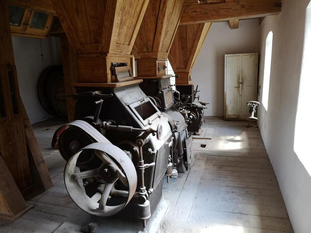 W młynie znajdują się zachowane oryginalne maszyn młyńskie firmy Kapler i SECK.