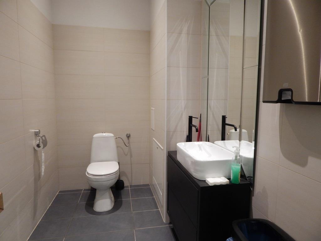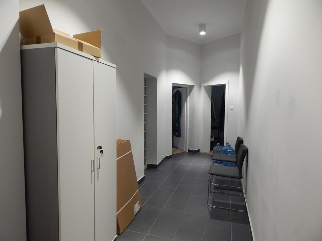 Lokal wykończony w wysokim standardzie. Na podłogach wysokiej klasy okładziny (w pomieszczeniach biurowych panele, korytarze i części socjalne - płytki). ściany i sufity - gładzone i malowane. Łazienka z WC w eleganckim stylu. Okna nowego typu, otwierane, PCV. Pokoje wyposażone w sieć komputerową, sieć telefoniczną.