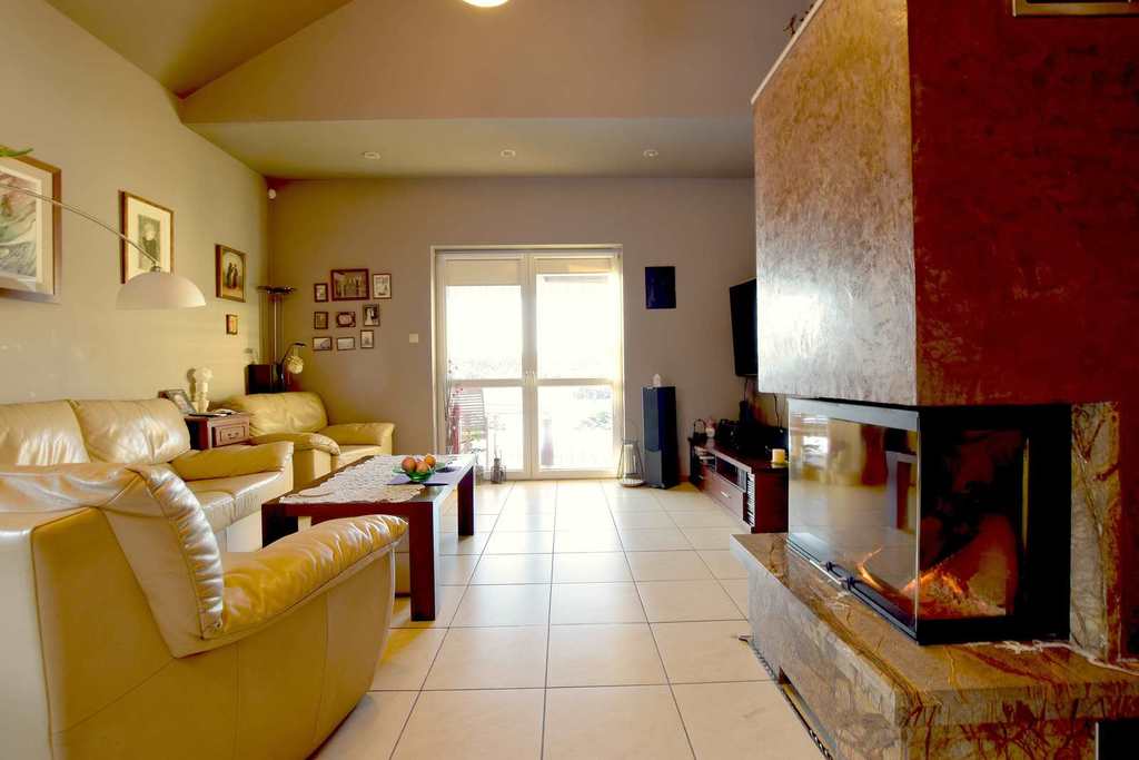 Parter: słoneczny salon połączony z jadalnią oraz z półotwartą kuchnią, trzy przestronne sypialnie, łazienka, wc, wiatrołap oraz garaż w bryle budynku. Nad salonem bardzo wysoka przestrzeń. Z salonu oraz z jadalni wyjścia na duży taras, w salonie kominek, z salonu prowadzą schody na antresolę. Na antresoli znajduje się otwarta przestrzeń oraz dwie garderoby, istnieje możliwość zamknięcia przestrzeni na antresoli.