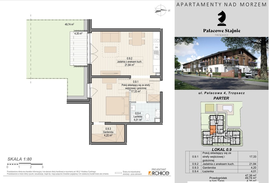 Pałacowe Stajnie to bazująca na historycznym obiekcie przypałacowym, inwestycja obejmująca 24 apartamenty o powierzchni od 29 m2 do 66,5 m2, w Trzęsaczu, w bliskiej odległości od pięknej plaży (około 500 metrów).