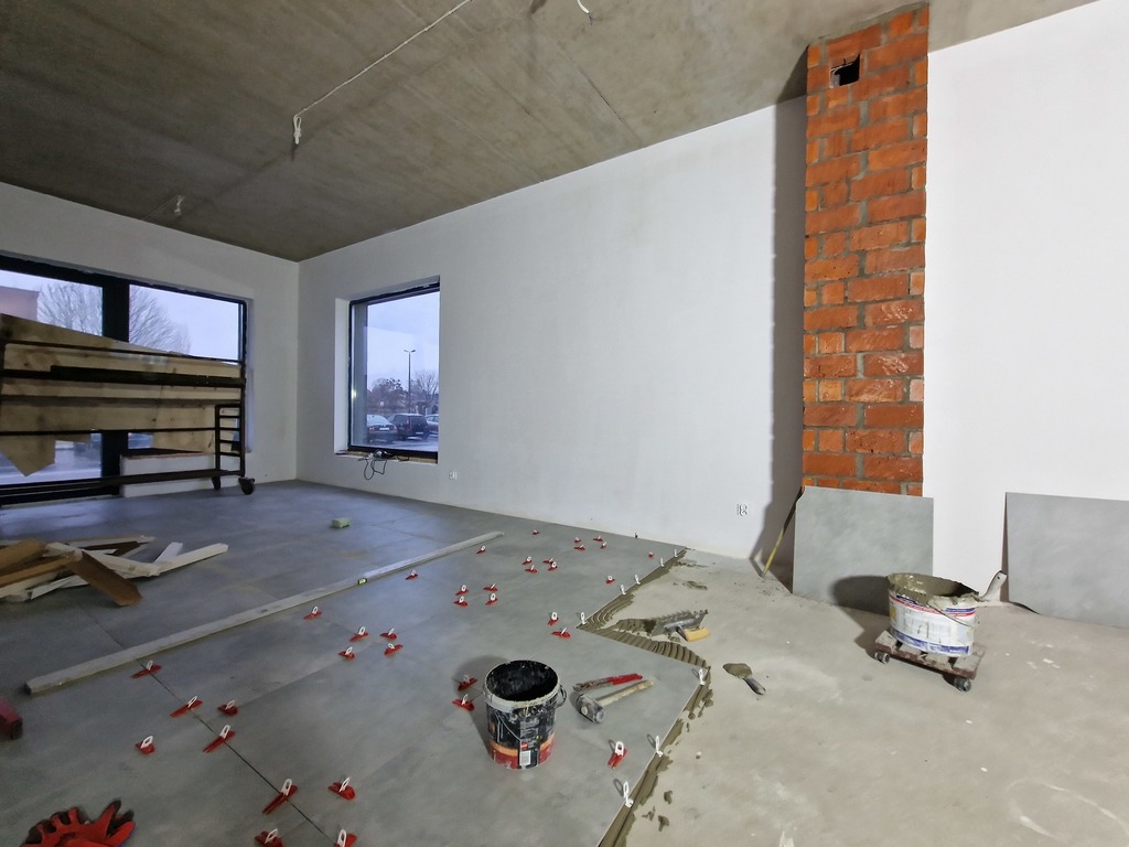 Każdy lokal jest wykończony – na podłodze znajduje się gres, a ściany są wygładzone i gotowe do własnej aranżacji.