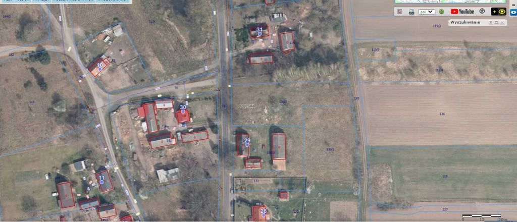 Działka położona w pierszej linii zabudowy. Dojazd z drogi głównej asfaltowej.