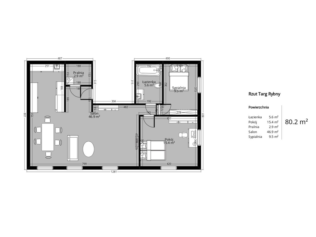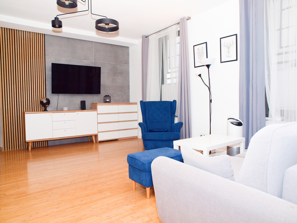 Mieszkanie składa się z salonu o imponującej powierzchni 34 m2, co stanowi idealną przestrzeń do relaksu i spotkań towarzyskich. Dodatkowo, znajdują się tu dwa przytulne pokoje o powierzchniach 15m2 i 11m2, z których jeden doskonale spełni rolę sypialni. Funkcjonalność wnętrza podkreślają także łazienka (4 m2) oraz pralnia (3 m2), wyposażona w pralkę i suszarkę.