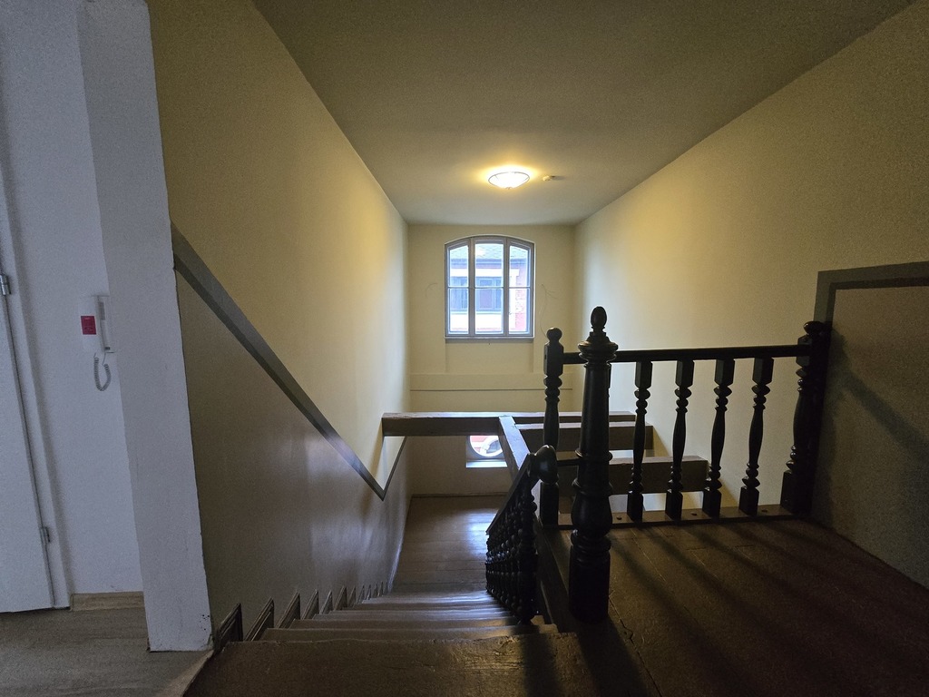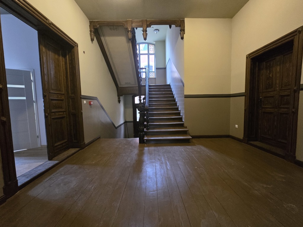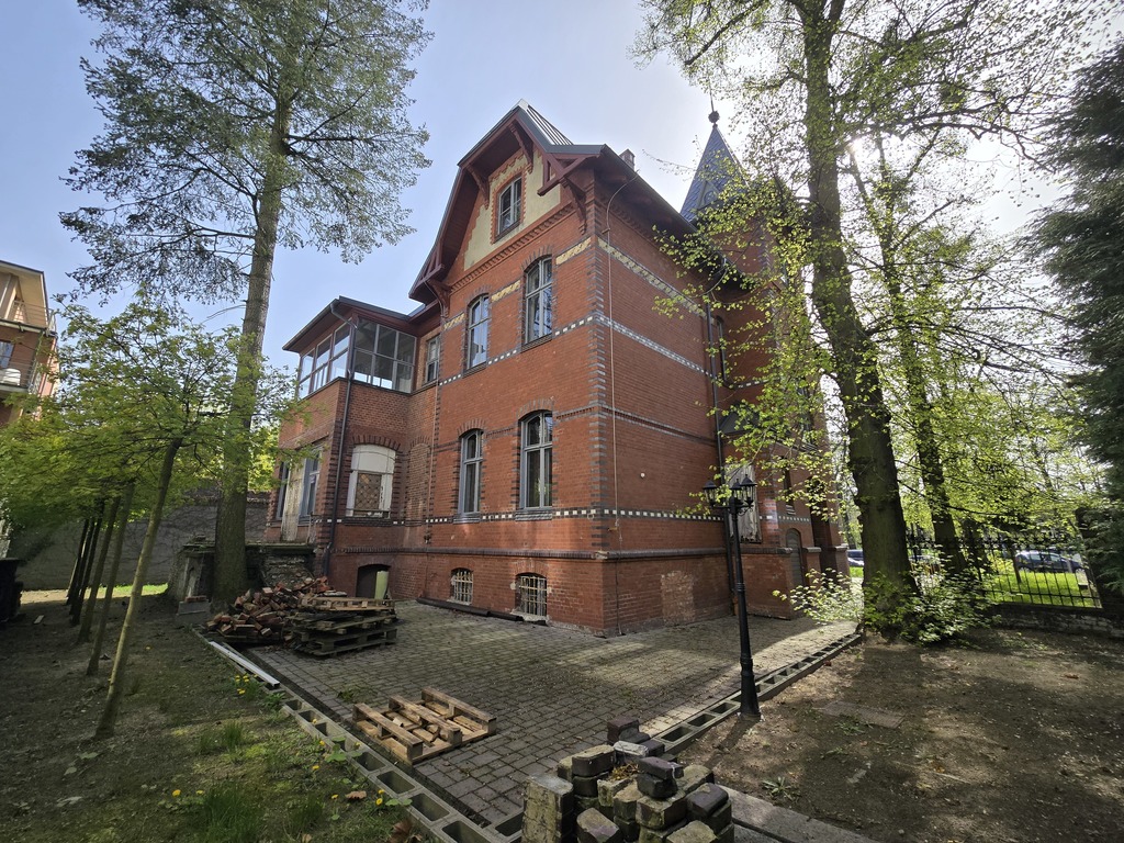 Spektakularna bryła budynku wyróżnia się na tle nowoczesnych apartamentowców i została wyremontowana pod nadzorem konserwatora zabytków .