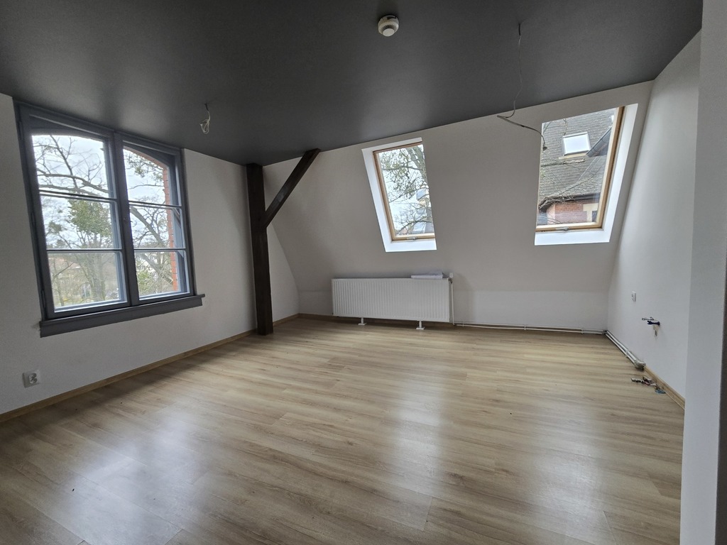 Przestronne pomieszczenia oraz staranne wykończenie wnętrz tworzą atmosferę elegancji i komfortu. Dodatkowo, duże okna zapewniają obfitą ilość naturalnego światła, co dodaje uroku i sprawia, że wnętrza są jasne i przyjemne.