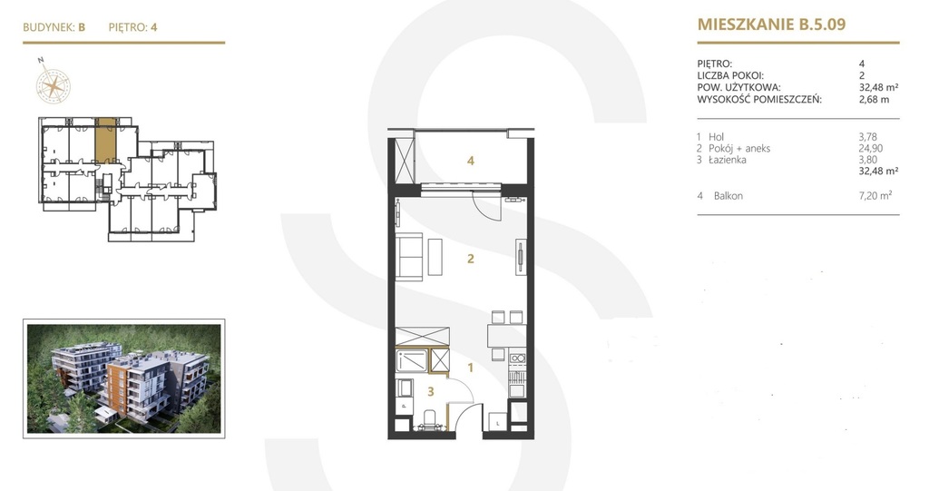 Do mieszkania przynależy również balkon o powierzchni 7,2 m2