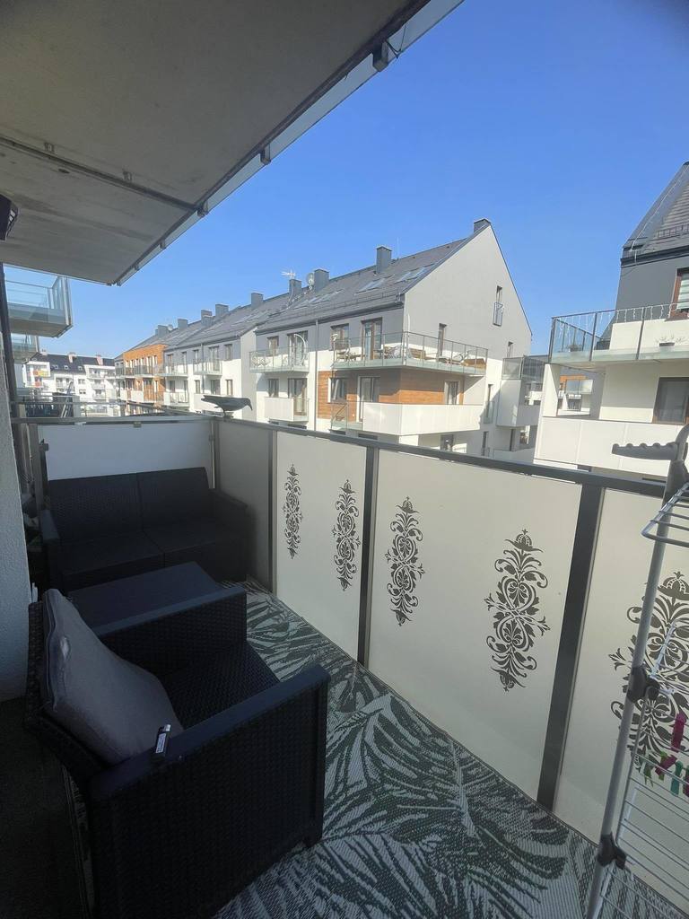 - oraz dwa duże balkony, jeden z wyjściem ze strony salonu, drugi z sypialni