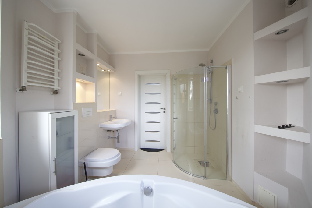 -Łazienka z wanną i prysznicem widna,