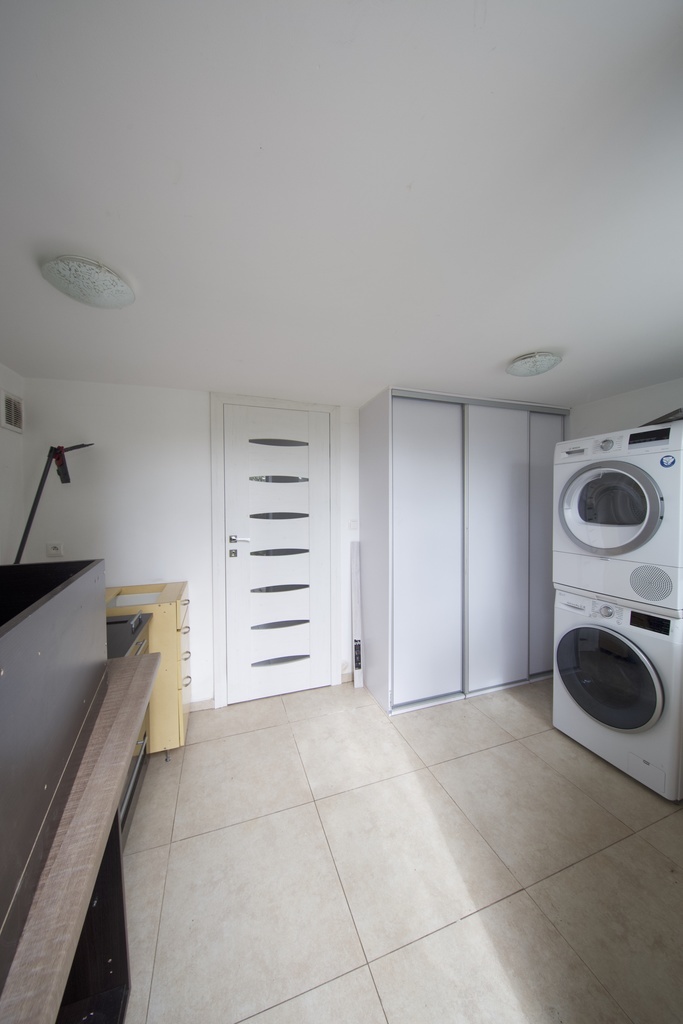 -Zejściem do przyziemia, gdzie znajduje się pomieszczenie gospodarczym z pralnią i bocznym wyjściem na ogród,