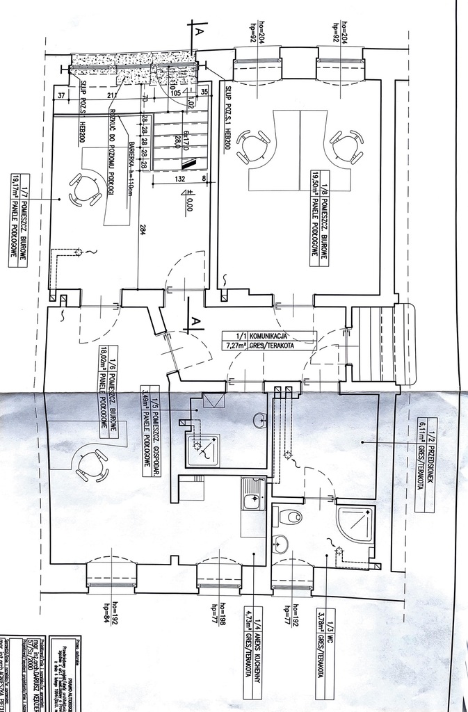 Na powierzchnię 84m2 składają się 3 pomieszczenia, dwie kuchnie i dwie łazienki. Wysokość pomieszczeń 3,20m.