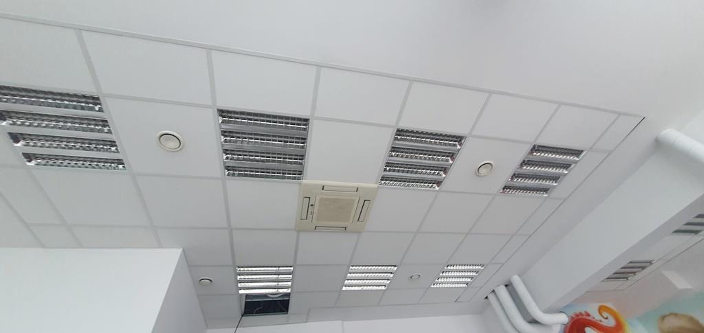 Na podłodze terakota, ściany malowane, sufity podwieszane z zamontowanym oświetleniem rastrowym. W lokalu rozprowadzono instalację klimatyzacji (nie ma tylko jednostki centralnej), instalację alarmową (wraz z kamerami monitoringu) oraz sieć komputerową.