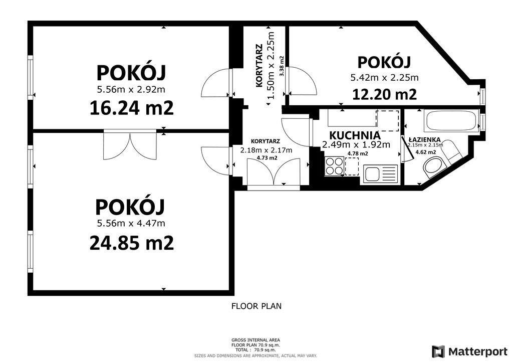 Mieszkanie ma powierzchnię 64,82 m2 i składa się z 3 pokoi, kuchni, łazienki z wc oraz przedpokoju ( przedpokój 6,40 m2/pokój nr 1 - 24,60 m2/pokój nr 2 -16 m2/pokój nr 3-10,10 m2/ kuchnia - 4,70 m2/ łazienka z wc-3,02 m2). W lokalu zostały zachowane stare podłogi (deska poniemiecka), oryginalna stolarka drzwiowa i okienna, przedwojenna sztukateria :)