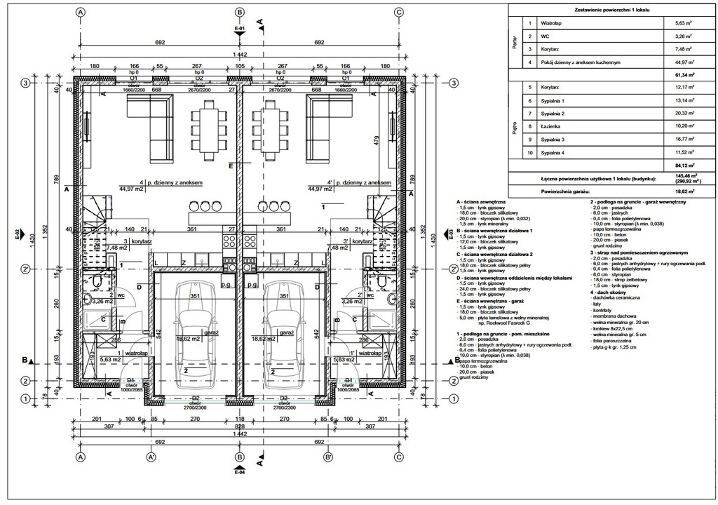 Łącznie: 145,46 m2 + Garaż: 18,62 m2.