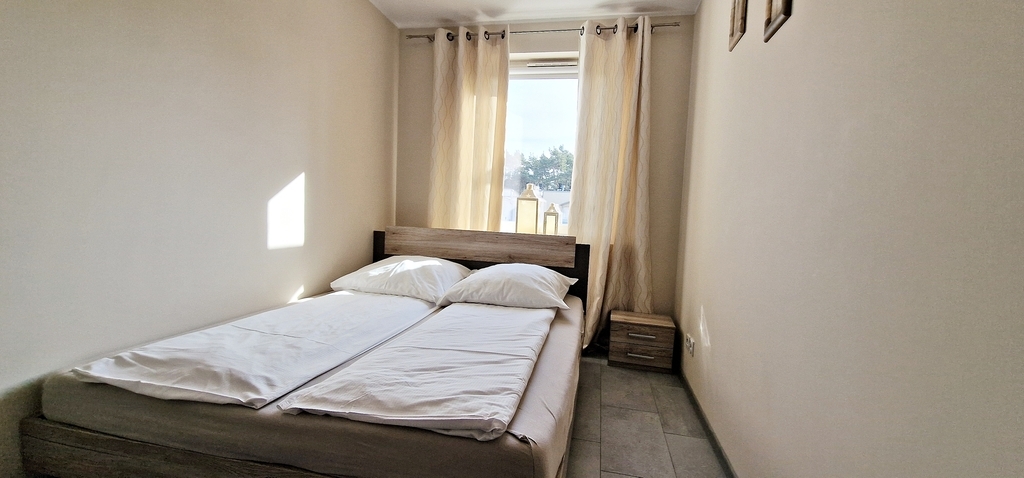 z przedpokoju, łazienki z kabiną, sypialni, salonu z aneksem kuchennym.Z salonu wyjście na balkon. Osiedle znakomicie zlokalizowane, w bardzo urokliwej lokalizacji, pięknie zagospodarowane, znajduje się ok 200 m od morza w otoczeniu zieleni, co daje niesamowity klimat, urok i zapewnia znakomity wypoczynek. W budynku jest cichobieżna winda.Blisko do centrum. Apartament całkowicie wyposażony z możliwością mieszkania cały rok, meble ruchome do ustalenia. Istnieje możliwość wynajmu miejsca postojowego. Bardzo niskie koszty utrzymania ok 350 zł czynszu plus prąd według zużycia. Serdecznie polecam i zapraszam na prezentację.