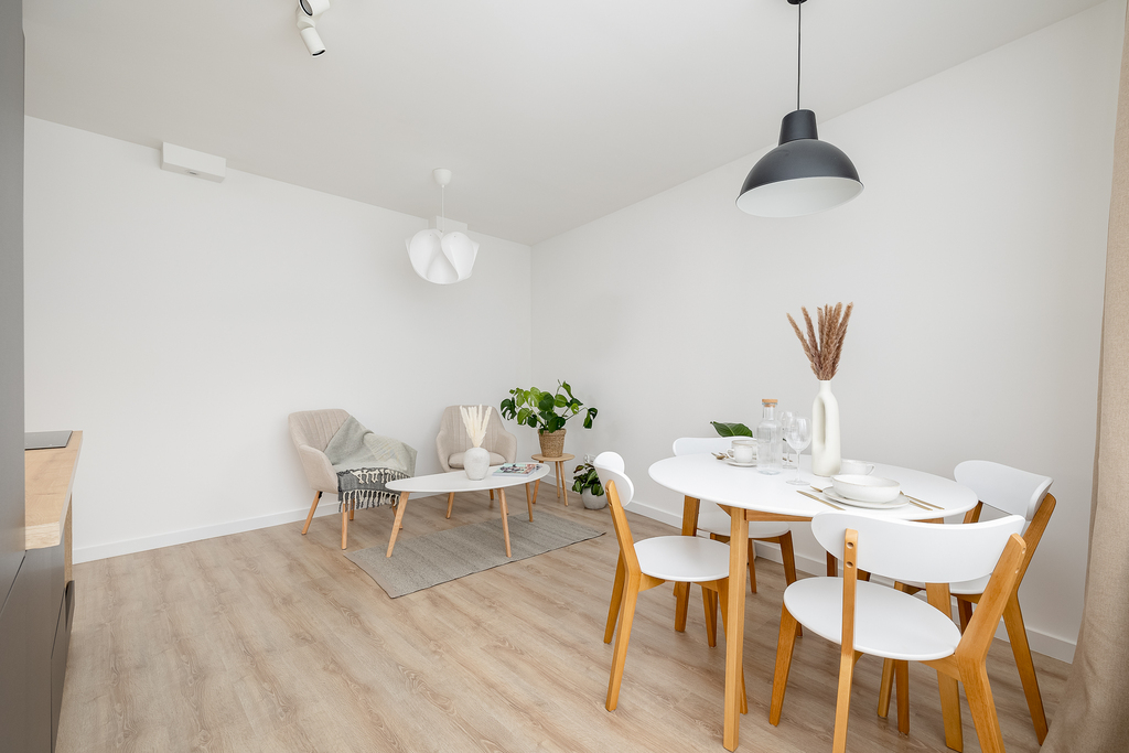 Układ mieszkania sprawia, że jest ono funkcjonalne zarówno dla małżeństwa, jak również jako inwestycja na wynajem.