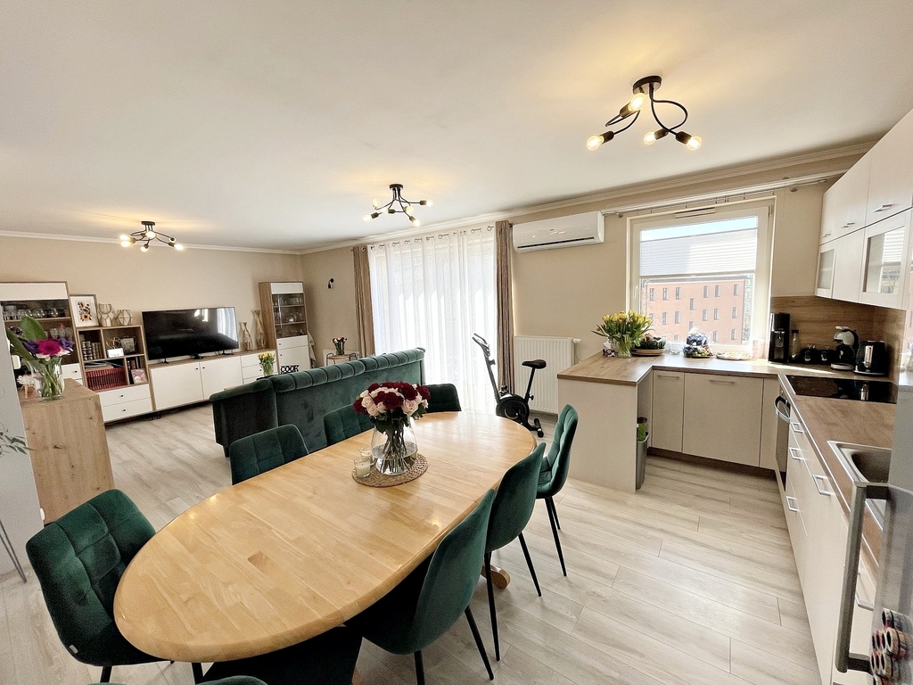Oferujemy Państwu na sprzedaż śliczne, wykończone w wysokim standardzie 5 pokojowe mieszkanie w budynku z 1998 roku i miejscem postojowym na zamykanym terenie.Zamontowana jest klimatyzacja.Jest o nietuzinkowym bardzo funkcjonalnym układzie .Budynek jest w stanie idealnym, niedawno został docieplony. Mieszkanie o powierzchni 111,6 m2, skałada się z przedpokoju, 4 pokoi, salonu z aneksem kuchennym z wyjściem na duży balkon o powierzchni ok 10 m2., łazienki wyposażonej w wannę, osobnym wc z umywalką oraz garderoby. Jeden z pokoi znajduje się na niższym poziomie, co daje wiele możliwośćci np. sypialnię czy spokojne miejsce do pracy. Powierzchnia pokoi: ok. 7m2, 9 m2, 12 m2., 12 m2. Mieszkanie jest w wysokim standardzie, bardzo jasne, znakomicie doświetlone.Okna wychodzą na wschód i zachód, od strony sypialni zmontowane są moskitiery. W przedpokoju jest bardzo pojemna, duża szafa o szerokości ok 210 cm, oraz dodatkowa druga szklana , o szerokości 240 cm. Kuchnia zrobiona na wymiar w pełni wyposażona w płytę indukcyjną, zmywarkę 60 cm, lodówkę, okap. Meble ruchome plus stół z krzesłami zostają do uzgodnienia z właścicelelm. Zostają tylko meble w pokoju na dole. Mieszkanie jest bardzo jasne, czyste, nie wymaga żadnych nakładów finansowych. Do mieszkania przynależy miejsce postojowe w podwórku i istnieje również możliwość przejęcia wynajmu miejsca postojowego zamykanego bramą przy ul. Raginisa za dodatkową opłatą 300 zł co miesiąc. Na piętrze znajduje się tylko jedno mieszkanie. Czynsz wynosi ok. 1000 zł plus media ( woda, ścieki, gaz , prąd według zużycia.W mieszkaniu jest klimatyzacja , klatka jest bardzo czysta, zadbana, a w przyszłości są plany na zamontowanie windy zewnętrznej. Serdecznie zapraszam na prezentację.