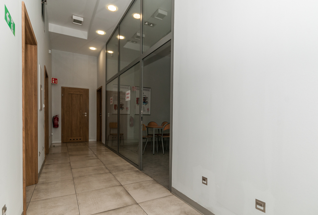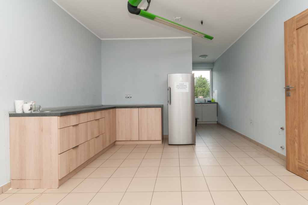 Część produkcyjno-magazynowa doświetlona wieloma oknami znajdującymi się w ścianach zewnętrznych jak również światłem sztucznym.