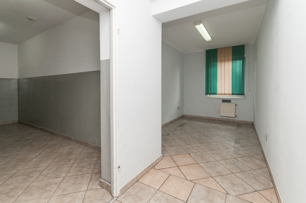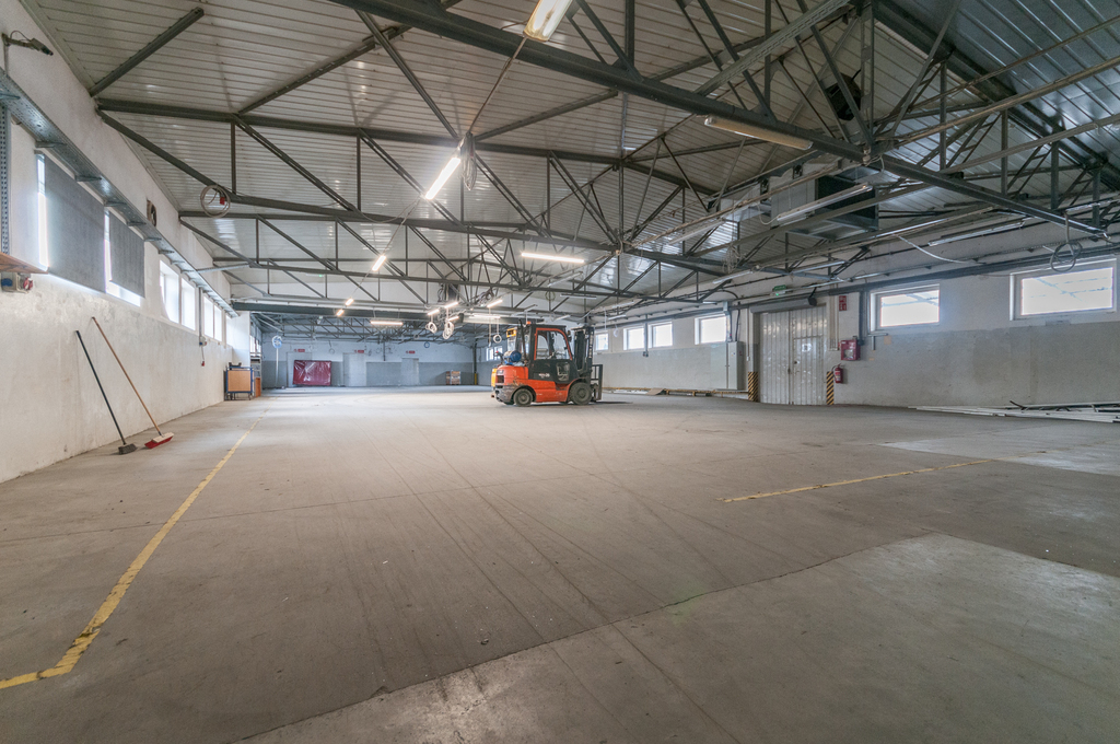 Pierwsza część hali ma wymiary ok. 26m X 15m i wysokości ok. 3,15m w najniższym punkcie. W tej części znajdują się dwie bramy wjazdowe dla sztaplarek/wózków widłowych o szerokości ok. 250cm i wysokości 300cm, kotłownia oraz dodatkowe pomieszczenia.