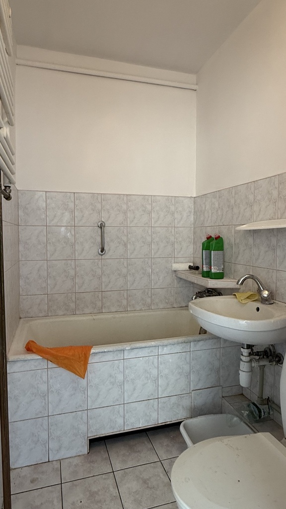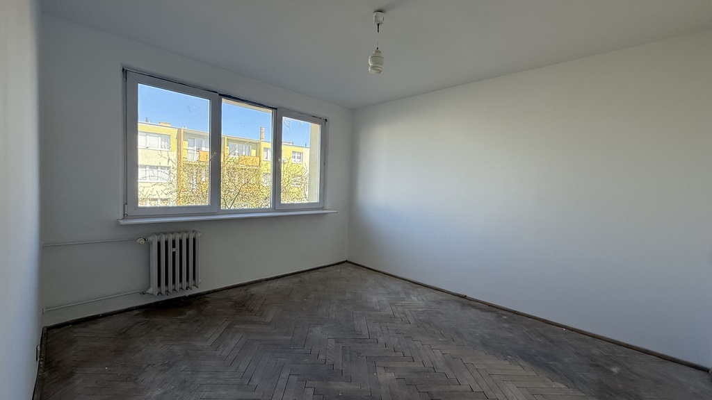 W mieszkaniu zostały odmalowane ściany na biało. Położone kilka lat temu gładzie na ścianach i sufitach. Na podłogach parkiet do renowacji. Łazienka w starej glazurze i terakocie.