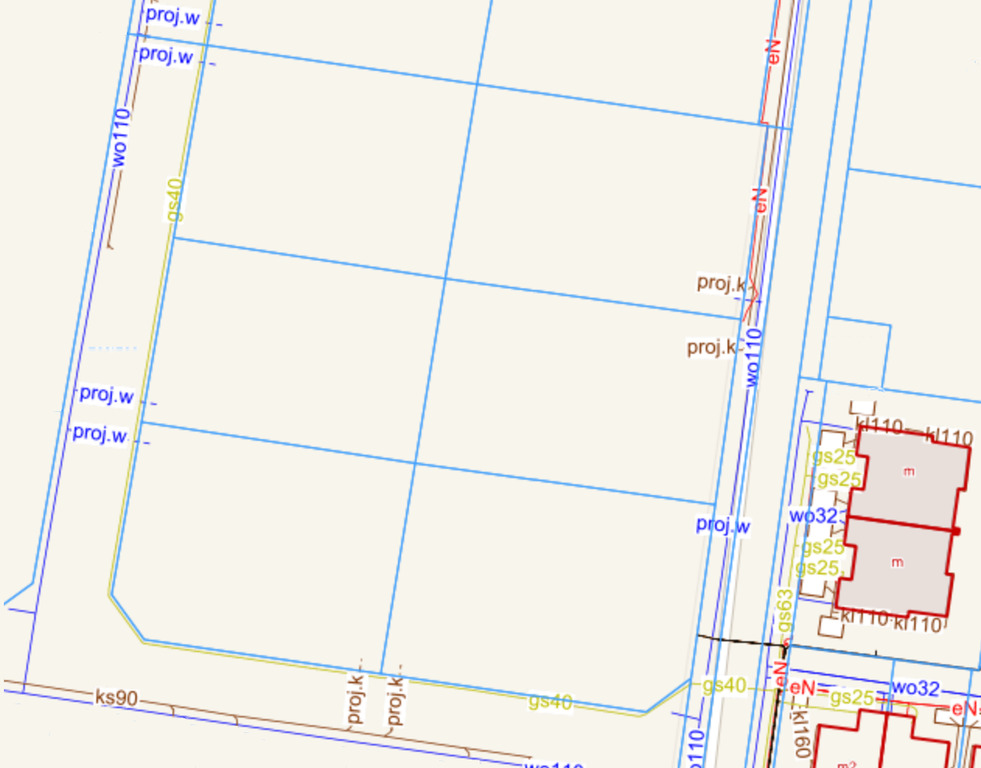 - Woda – doprowadzona do działek