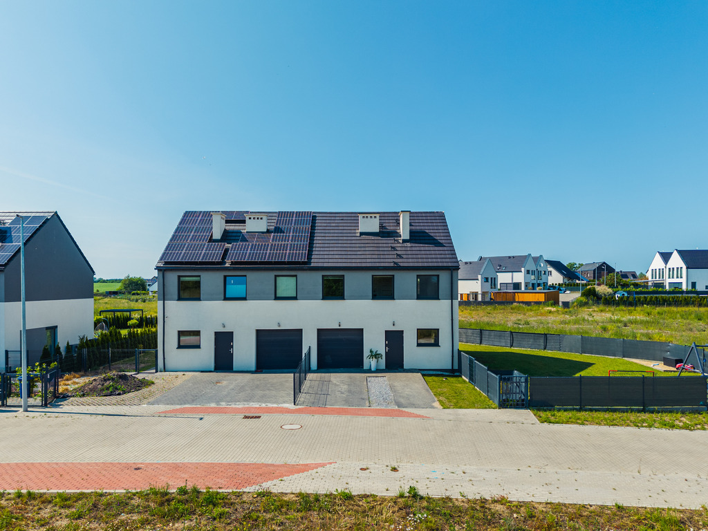 Na sprzedaż skrajny bliźniak w Warzymicach z 2022 roku posadowiony na działce 460 m2. Brak skosów!