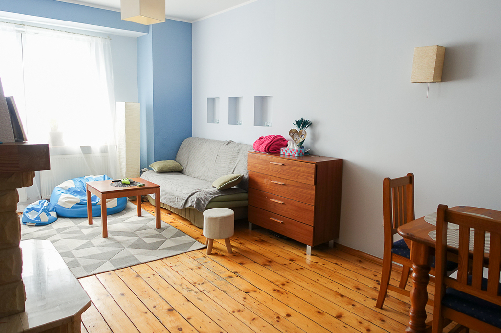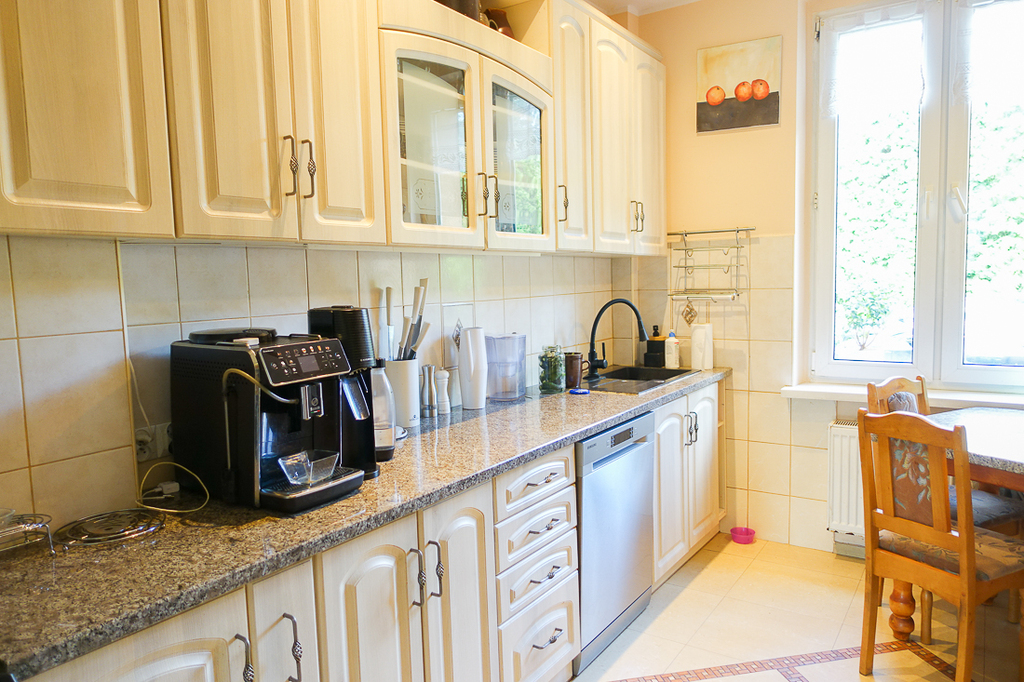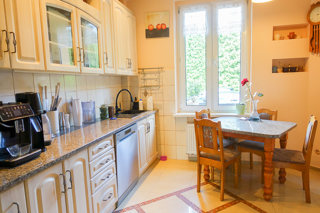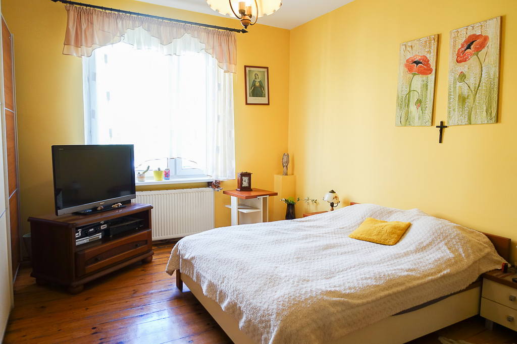 Pokój 16 m2, sypialnia 21 m2, kuchnia z oknem o powierzchni 12 m2 z zabudową meblową i urządzeniami AGD.