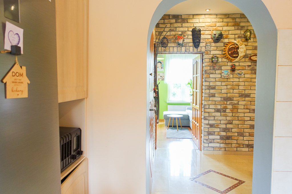 Dwa samodzielne mieszkania, każde 3 pokojowe z kuchnią i łazienką.