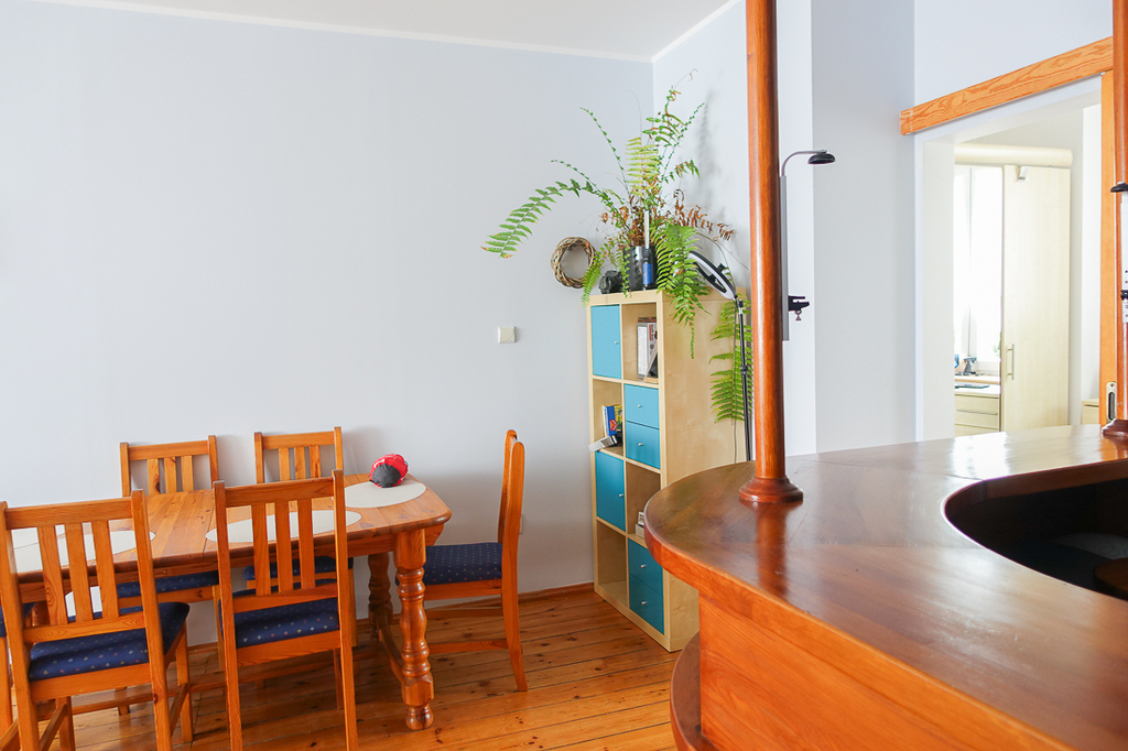 Na parterze mieszkanie o powierzchni 74 m2, na I piętrze mieszkanie 3 - pokojowe z kuchnią i łazienką.