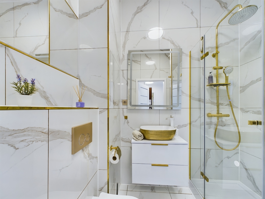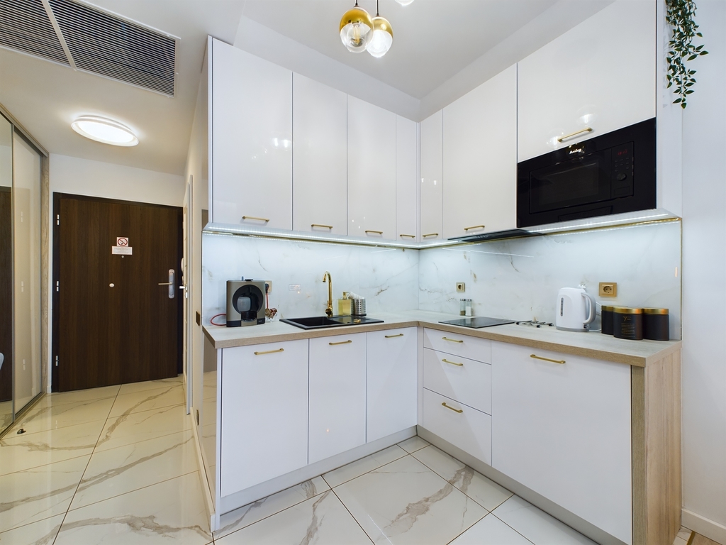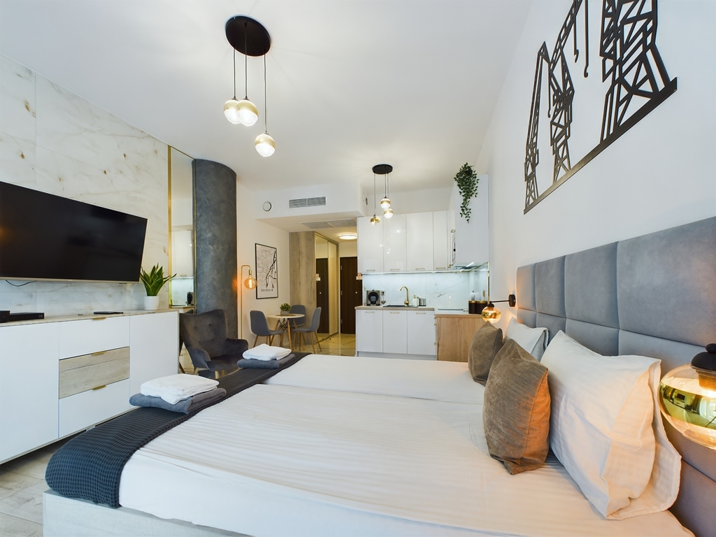 Wysoki standard wykończenia. Apartament został wykończony i urządzony materiałami najwyższej jakości z dbałością o każdy szczegół.