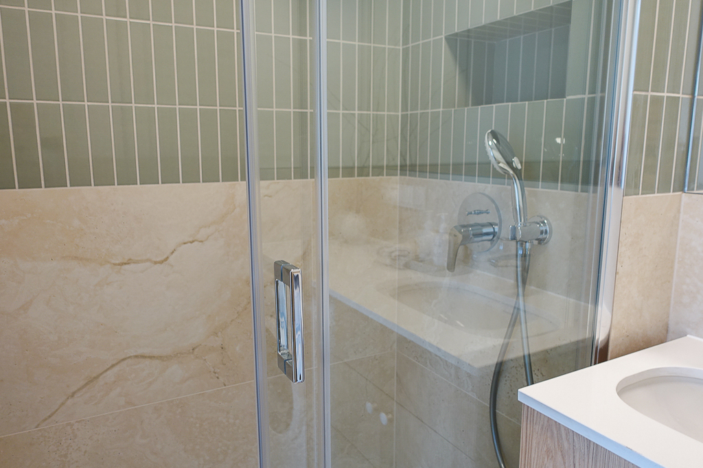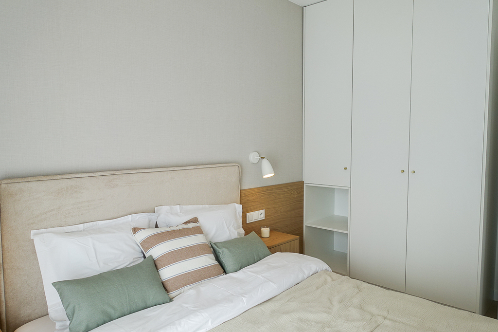 Apartament 3 pokojowy 57,56 m2 od strony Zatoki Wrzosowskiej. 3 pokoje o powierzchni 22,7 m2, 9,9 m2, 8,9 m2, łazienka 3,7 m2, przedpokój 2,5 m2. I piętro z balkonem o powierzchni 16,7 m2. I piętro. Klimatyzacja zainstalowana w mieszkaniu.