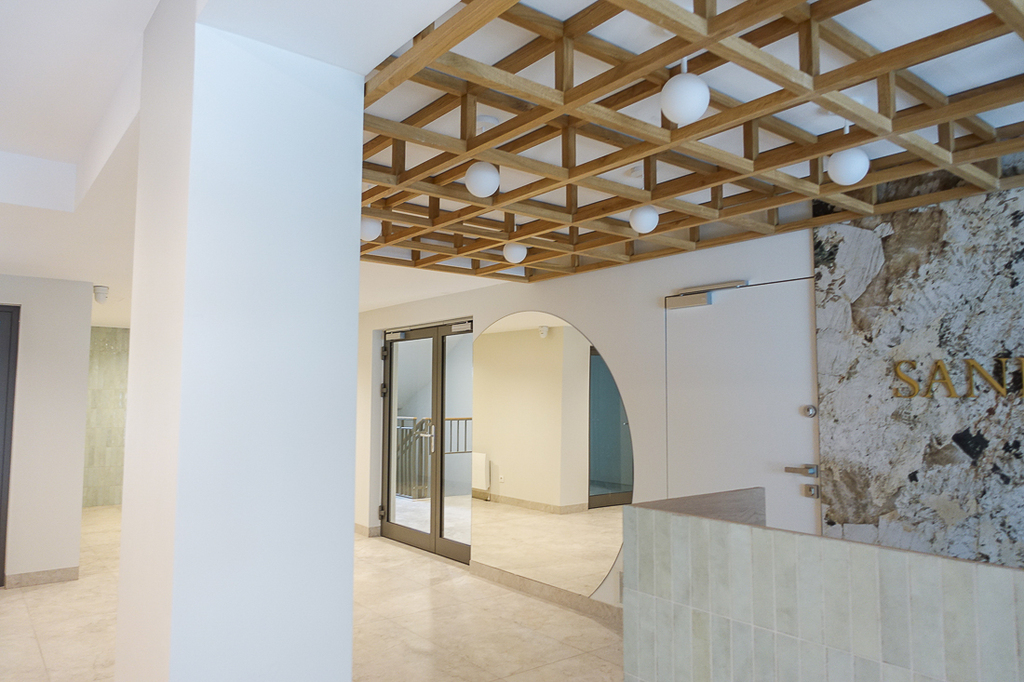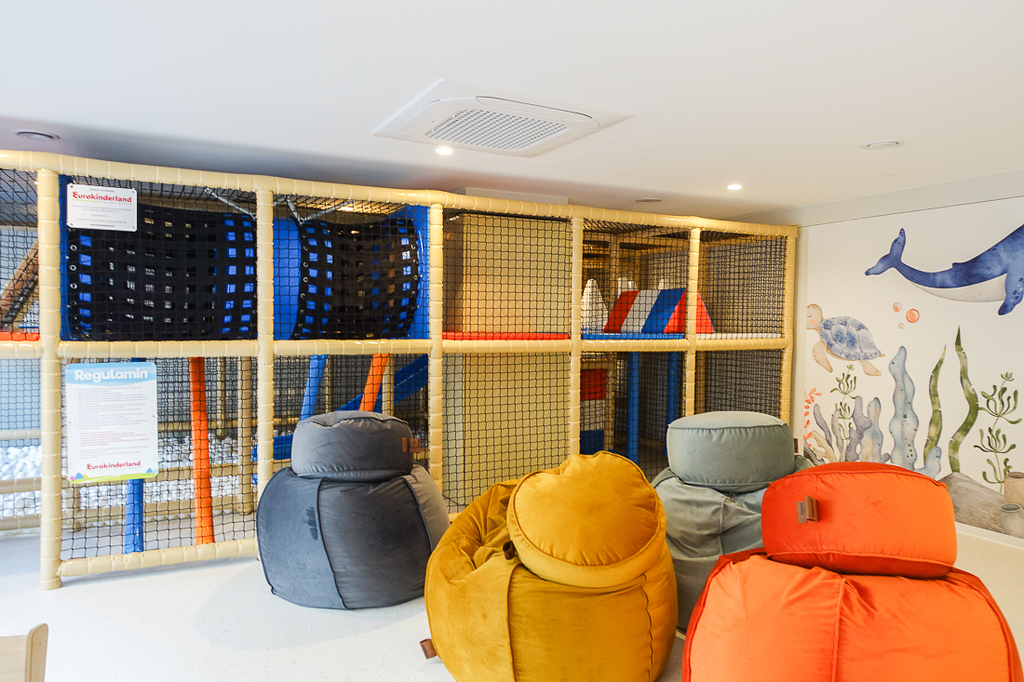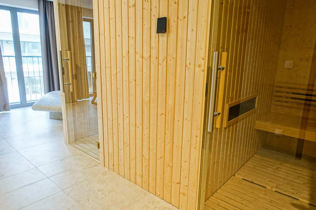 Luksusowe apartamenty na ostatniej kondygnacji dodatkowo posiadają wyjścia na indywidualne tarasy na dachu budynku. W obiekcie jest sucha sauna, grota solna, siłownia i Kidsclub. Mieszkanie jest już dostępne. Zainstalowana klimatyzacja i możliwość zdalnego sterowania, rolety antywłamaniowe są wykonane, bramy garażowe otwierane pilotem, teren zamknięty.