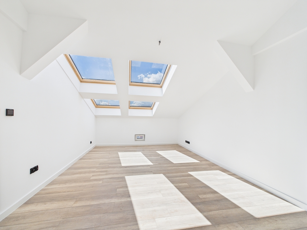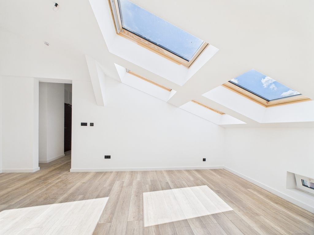 * duże okna dachowe, które wypełniają wnętrze naturalnym światłem i tworzą unikalny klimat;