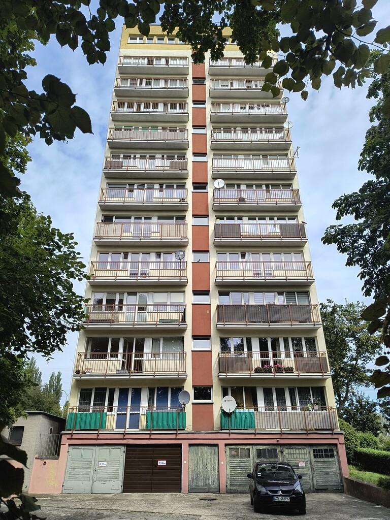 Nieruchomość położona jest na III piętrze, XII kondygnacyjnego wieżowca z wielkiej płyty. Elewacja jak i klatka schodowa była remontowa. W bloku mamy do dyspozycji 2 windy. Okna mieszkania wychodzą na dwie strony budynku, balkon od południa. Mieszkanie przestronne, w przedpokoju miejsce na szafę. Do mieszkania przynależy piwnica. W okolicy budynku liczne miejsca postojowe Wjazd na podwórko przez szlaban na pilota. Ogrzewanie miejskie, CWU - SEC. Piony kuchenne wymienione. Mieszkanie w stanie - do remontu.