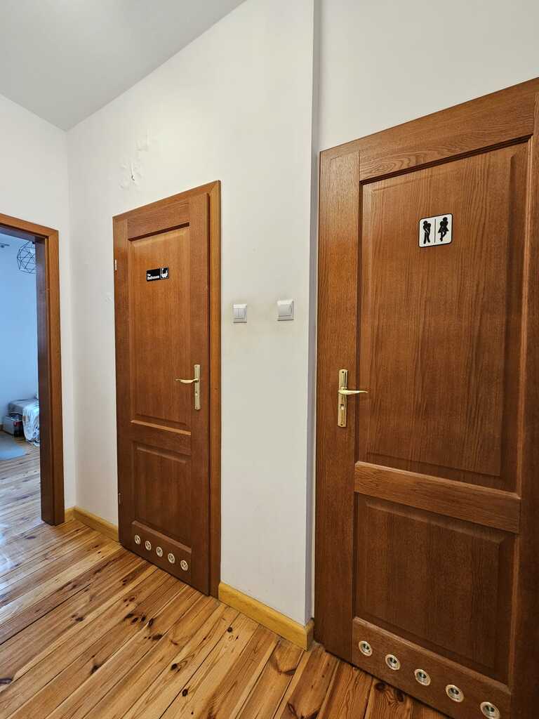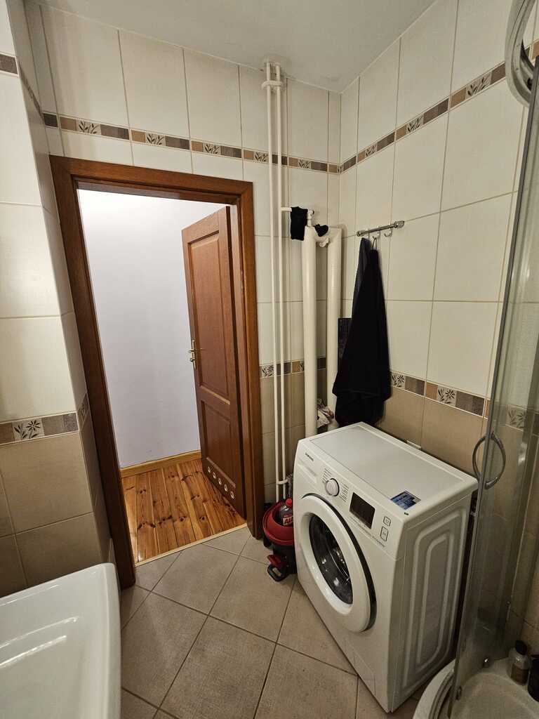 3 pokoje rozkładowe. W pokojach deska podłogowa na podłodze, ściany wygładzone pomalowane. W przedpokoju znajduje się duża szafa typu komandor. W pełni wyposażona duża kuchnia z miejscem na stół jadalny. Łazienka w glazurze i terakocie z umywalką, kabiną prysznicową i pralką. Wc osobno również wykafelkowane.