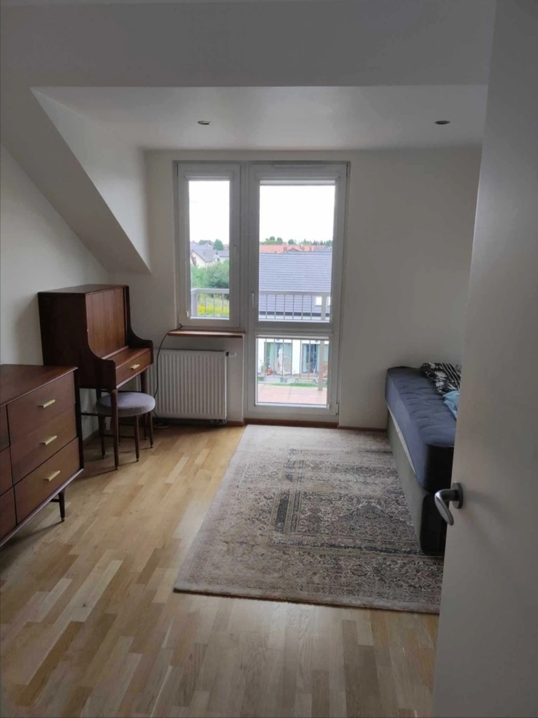 Mieszkanie znajduje się na drugim piętrze, co pośród niskiej zabudowy oferuje przyjemne widoki na zieleń. Okolica spokojna, ale dobrze skomunikowana. Lokalizacja zapewnia dobry dostęp do przedszkola, szkoły podstawowej, kościoła, sklepów, parku.