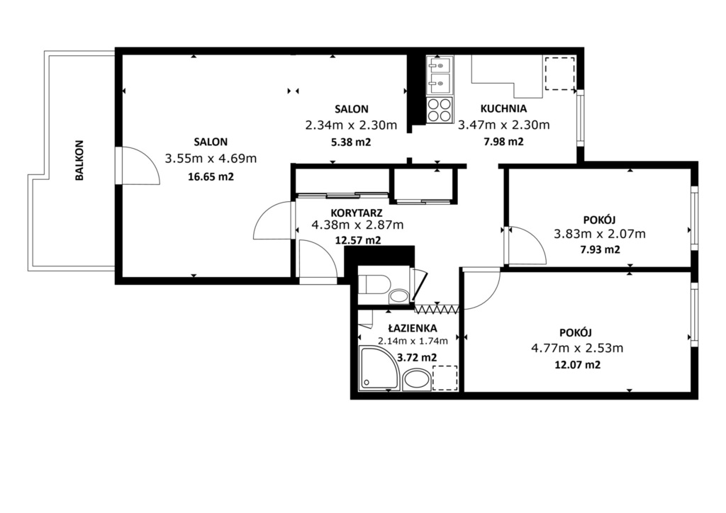 W skład mieszkania wchodzą: - przestronny salon z wyjściem na balkon,