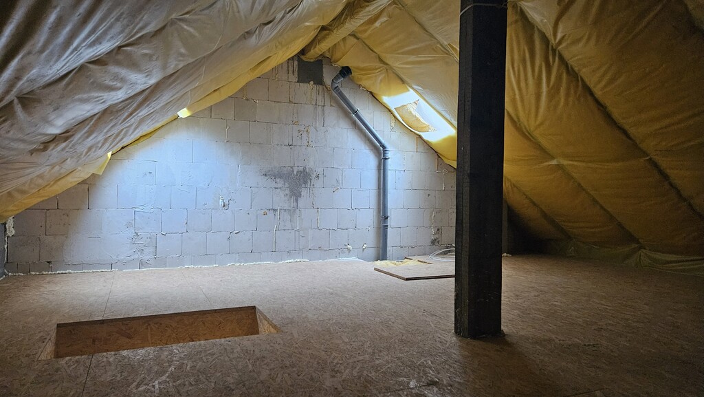 Ocieplenie wewnętrzne garażu : sufit wełna mineralna gr 10 cm, ściany os strony mieszkania styropian Lambda 0,38 gr 5 cm
