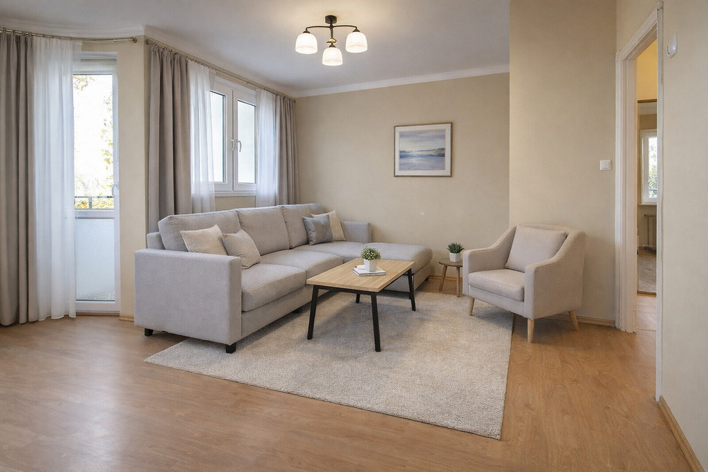 • duży, jasny pokój dzienny z wyjściem na balkon,