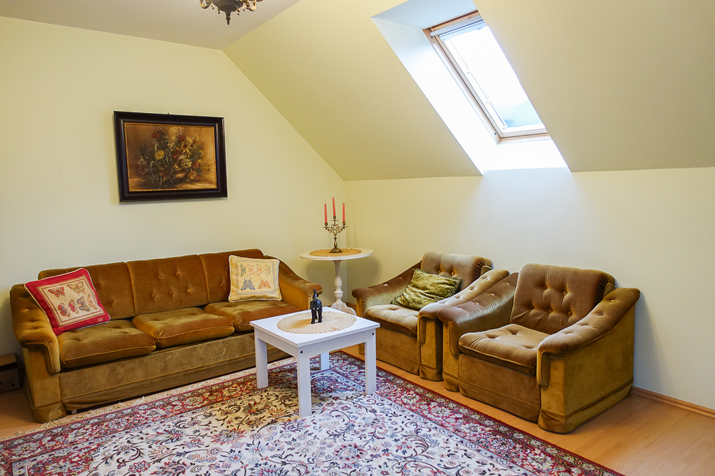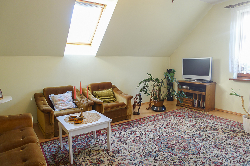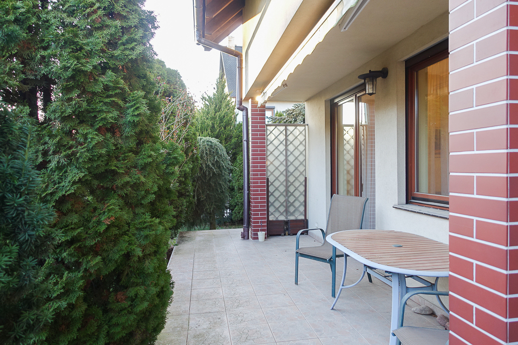 For sale: a detached house, built in 2000, very comfortable and functional. It's located in a quiet street in Gumieńce, surrounded by lush greenery and other single-family homes and recreational areas. Located near Huzarów, Niepołomicka, and Tyniecka streets, the house offers easy access to public transportation. Ideal for a multi-generational family. A family atmosphere was a priority in creating the house, which is evident in the carefully thought-out, welcoming layout. Thanks to large windows on the ground floor, the interiors are filled with natural light, emphasizing the open character. The house was carefully planned with the family in mind, creating ideal conditions for relaxation and work. Ground floor (93.5 m²): * Hall (10.5 m²) - open to the living room, with entrances to the kitchen, guest toilet, technical rooms, and attic. * The living room (32 m²) features a fireplace and double doors leading to a 16 m² terrace surrounded by greenery, an ideal place for relaxation, and further on to the garden with trees and shrubs. The living room opens onto the hall. * The heart of the home is the spacious, bright kitchen (13.5 m²) – square in shape, with a window, whose soft lighting creates a cozy atmosphere, making cooking a true pleasure and conducive to family gatherings. Practical built-in furniture with appliances: refrigerator, 60 cm Whirlpool dishwasher, electric stove with ceramic hob and Amica oven, extractor hood), table and chairs. * Guest toilet (2.6 m²) – toilet with sink. First floor (88 m²): * Bedroom 24.5 m² (27.3 m² floor area)) with the convenience of a spacious wardrobe with a window, * Wardrobe 9 m² (11.5 m² floor area) * Room 16 m² (20.4 m² floor area) * Room 9.5 m² (12.7 m² floor area) * Lounge 18.5 m² (20 m² floor area) with a roof window, possibility of creating a common computer area * Bathroom 11.1 m² (13.5 m² floor area) with a bathtub, washbasin, toilet and bidet, with the possibility of installing a shower cabin, roof window. * Small wardrobe with sloping ceilings without a window. On the first floor, the bedrooms and rooms have full-size and roof windows. Attic: Access from the hall via a drop-down staircase. Three storage rooms with skylights. The roof is insulated, as is the ceiling above the first floor. The attic height at its highest point is 2.65 m. The technical rooms are located on the ground floor, separate from the living area: * Laundry room (10.5 m²) with a bathtub and washing machine, a Buderus gas condensing boiler (replaced 3 years ago), and a hot water tank (118 liters) * Pantry (5.2 m²) with an additional refrigerator * Garage (19.2 m²) for one car, with a remote-controlled up-and-over gate. Entrance to the house is through a vestibule (2.4 m²), with terracotta floors. BUILDING DESCRIPTION: Usable area 189.5 m² (more on the floor), plot 492 m². Surrounded by single-family and terraced houses. Garden with ornamental plantings. The entrance to the building and garage are from the ground floor. The house has no basement. The usable area is 189.5 m², and the total area is 250 m². The house is situated on a 492 m² plot. The ground and first floors have slight slopes (high knee wall), and the attic is unusable and low, without a basement. The building is constructed of silicate blocks with good insulating properties, and the roof is steeply pitched with metal tiles, insulated. The knee walls on the first floor are 1.4 m high. The bathroom and toilets are tiled with tiles and terracotta. The technical rooms are tiled with terracotta. Modern wooden VELUX windows, mahogany double-glazed, partially roof-hung windows on the first floor, and wooden window sills. Gas heating, burglar-proof entrance doors, remote-controlled burglar-proof roller shutters throughout the ground floor, alarm system, and CCTV. A built-in garage with space for one car and two wheels. The garage door is hinged and remote-controlled. An additional parking space is available on the property in front of the garage. The property is fenced and has a remote-controlled gate.
