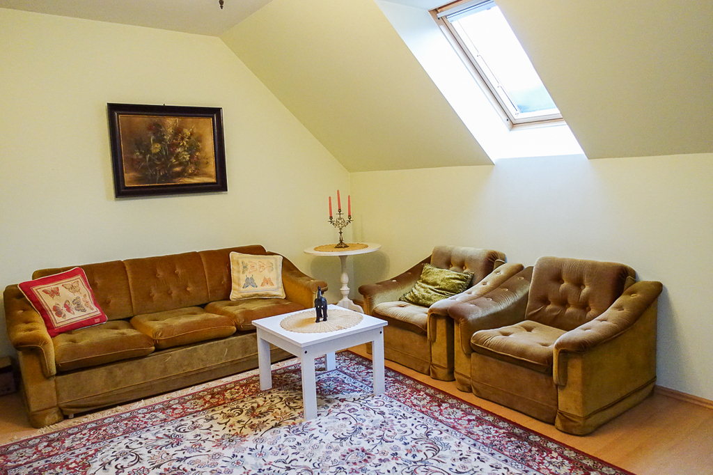 * Hall wypoczynkowy 18,5 m² (po podłodze 20 m²) z oknem połaciowym, możliwość wydzielenia w nim części wspólnej komputerowej