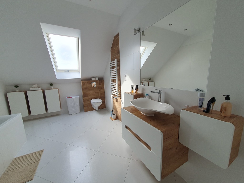 Ogrzewanie w całym domu podłogowe. Dom posiada instalacje alarmową oraz instalacje centralnego odkurzacza.