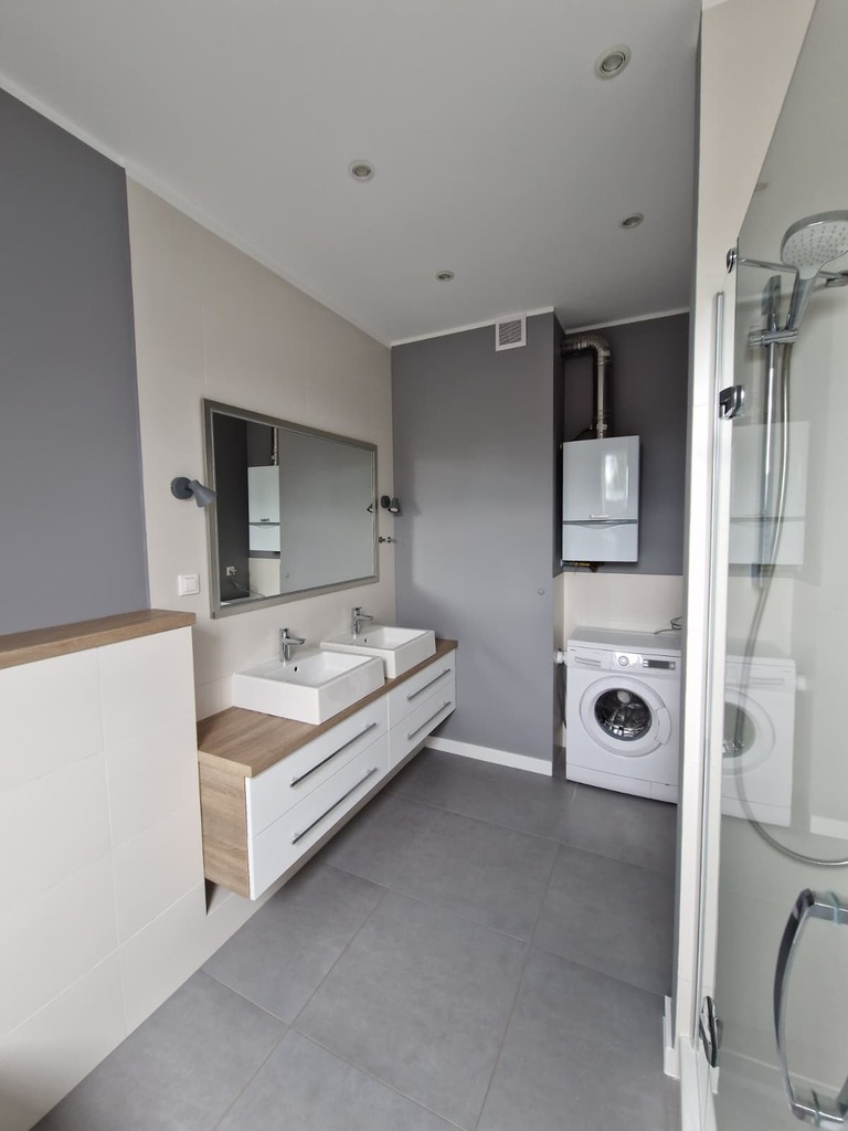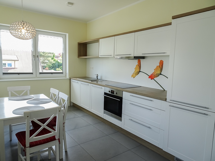 Mieszkanie bez czynszu do zarządcy. Do ceny najmu należy doliczyć opłaty za media (energię elektryczną, wody, kanalizację, gazu, wywozu śmieci bytowych). I POZIOM 41,4 m2: salon 23,38 m2, panele podłogowe, ściany i sufity gładź malowana na biało, lampy, oddzielna kuchnia 10,78 m2 w niej meble kuchenne w zabudowie, lodówko-zamrażarka, elektryczna płyta grzewcza, piekarnik elektryczny, okap kuchenny, zlewozmywak, zmywarka, balkon, WC 1,67 m2 z umywalką,